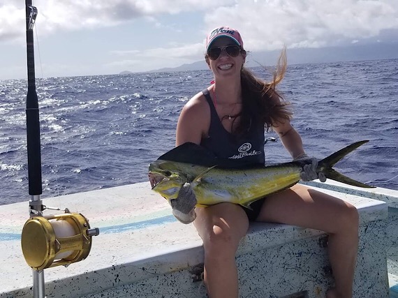 Kaulana with a awesome catch on the Rainbow Runner Fishing Charters